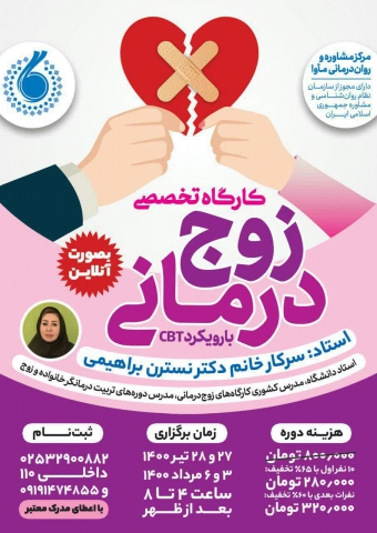 کارگاه تخصصی زوج درمانی با رویکرد CBT به صورت آنلاین.